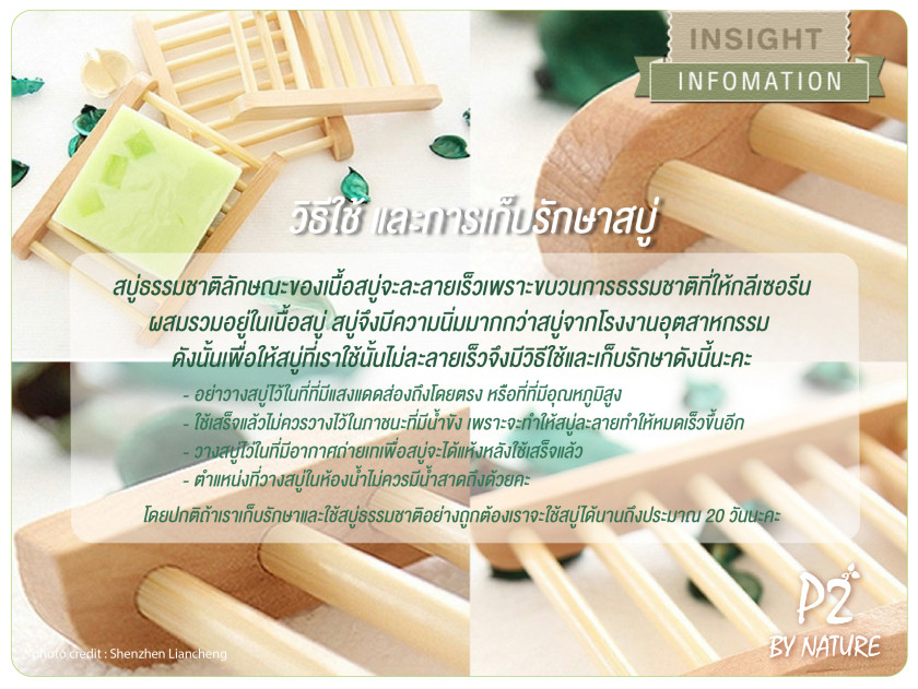 - วางสบู่ไว่ในที่มีอากาศถ่ายเทเพื่อสบู่จะได้แห้งหลังใช้เสร็จแล้ว