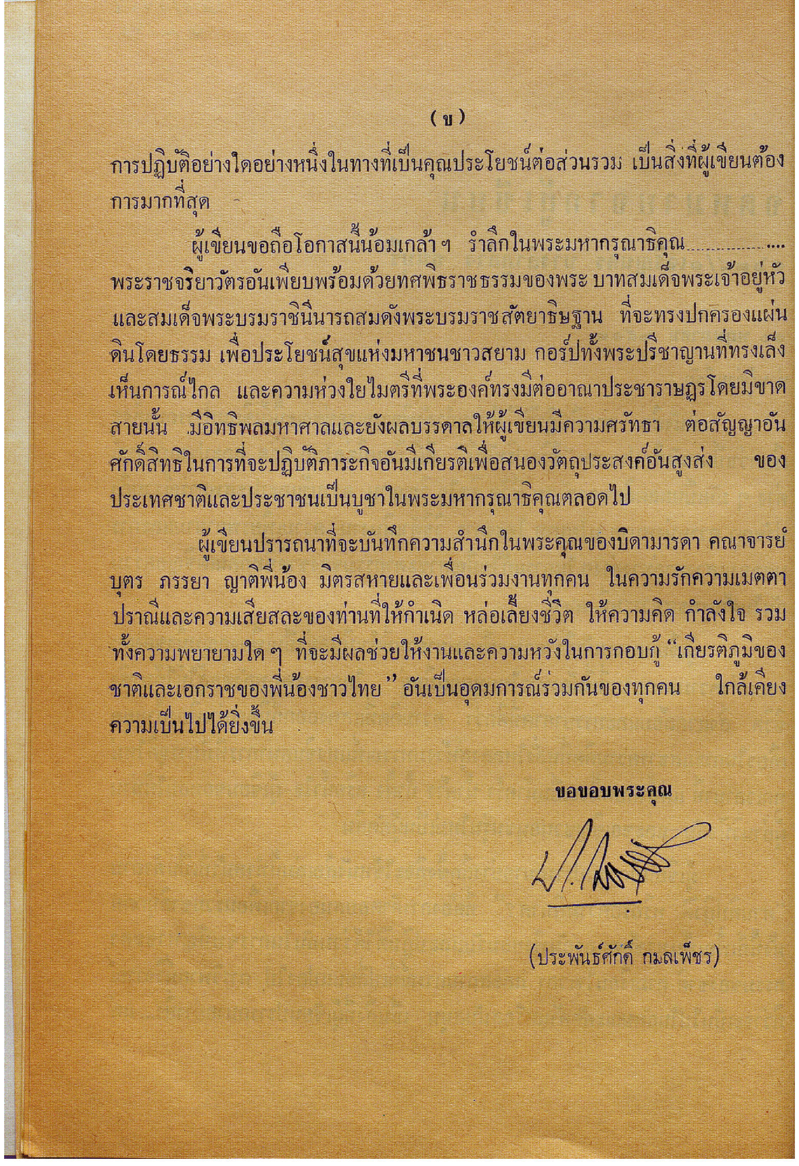 ขอกราบขอบพระคุณท่านผู้มีเกียรติ และญาติมิตรทุกท่านที่ กรณุาเสียสละเวลามาร่วมในพิธีรดน้ำศพ สวดพระอภิธรรมศพ นำหรีด ดอกไม้มาเคารพศพเป็นเจ้าภาพสวดพระอภิธรรมศพ และร่วมทำบุญ ปัจจัย ตลอดจนให้เกียรติมาร่วมในพิธีฌาปนกิจศพ คุณพ่อประพันธ์ศักดิ์ กมลเพ็ชร ในครั้งนี้ หากมีสิ่งใดขาดตกบกพร่อง เจ้าภาพขอกราบประทานอภัย มา ณ โอกาสนี้